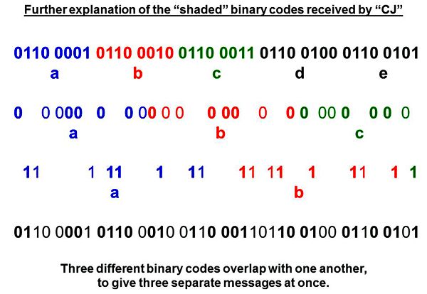 The fact that CJ reported seeing a large UFO with “Greek” symbols, and shortly afterward received complex binary messages, makes Drew consider it unlikely to be a mere hoax. He also emphasizes that the messages use an unprecedented type of “overlapping binary code,” so complex that it would be extremely difficult for anyone without advanced knowledge to produce.